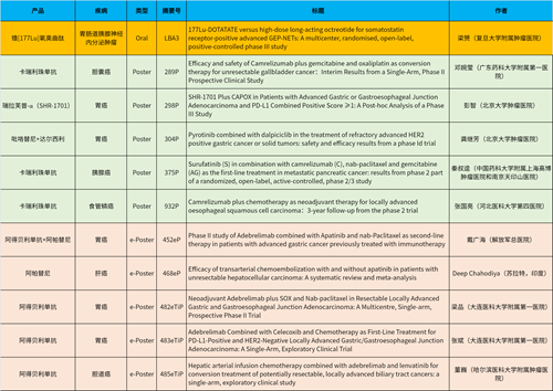 在消化系统肿瘤领域,金年会金字招牌诚信至上产品相关研究共入选1项最新突破性摘要(LBA)、5项壁报和5项电子壁报,共11项研究。其中阿得贝利单抗入选4项研究、卡瑞利珠单抗入选3项研究。